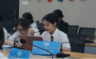 本次大会设定英语为官方语言,通过一般性辩论、自由磋商、决议草案等环节,力图还原模拟联合国大会的运作方式和议事规则。大会现场,同学们身着正装,扮演各个国家的外交官,针对大会核心议题各抒己见、侃侃而谈。美国代表王婷婷提出,发达国家承担历史责任,带头大幅减少排放的同时,发展中国家也应在可持续发展中采取积极的行动。巴西代表孟成烨主张应基于各国历史排放、发展阶段和实际情况建立更加公正、透明的国际环境治理机制。