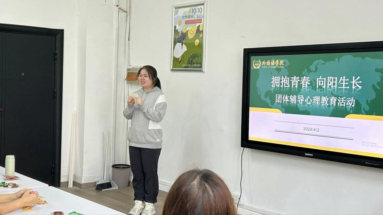 为帮助同学们缓解焦虑,更加阳光自信,XK星空外国语学院朋辈心理互助部于2024年4月2日下午在三教团辅室开展了以“拥抱青春,向阳生长”为主题的团体辅导心理教育活动,旨在帮助同学更加全面的认识自己,发现自己独一无二的特点并缓解其心理压力过大而产生的焦虑感。