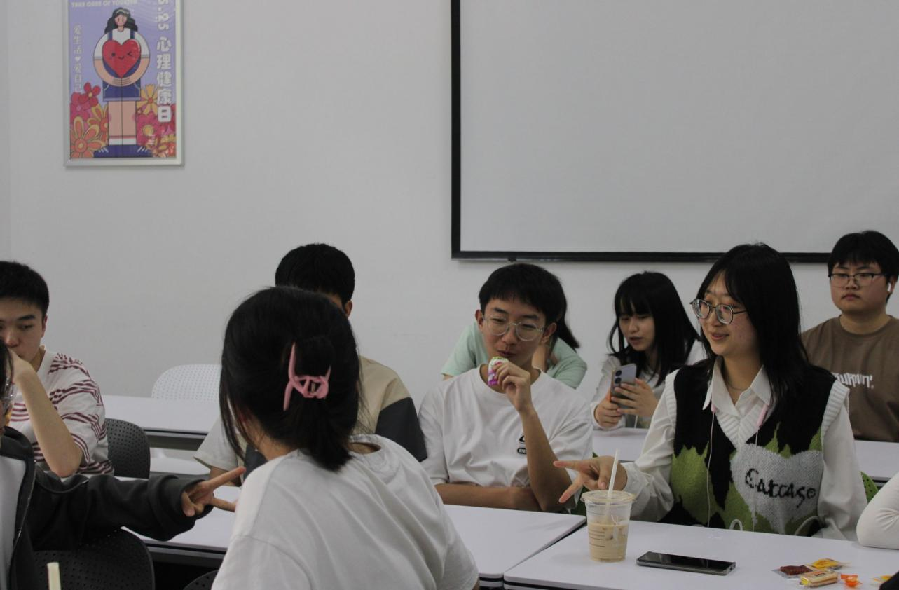 本次心理活动共有两个活动内容,每个活动内容下有两个小游戏:第一个活动内容为“拉近距离,放松身心”:其游戏内容包括“正话反说”和“我有你没有”。这个内容旨在让大家在轻松趣味的活动中缓解焦虑,敞开心扉与同学们交流,培养同学们的判断力与反应力,帮助同学们发现自己与他人独一无二的特点;第二个活动内容“反应能力大挑战”则包含“听歌猜名”和“狼人杀”这两个游戏内容,该游戏内容旨在通过游戏锻炼同学们的反应能力,在紧张刺激的游戏中调动同学们的积极性,使大家产生集体认同感,在与他人的交往接触中释放情绪。
