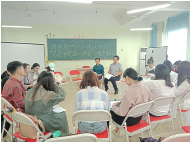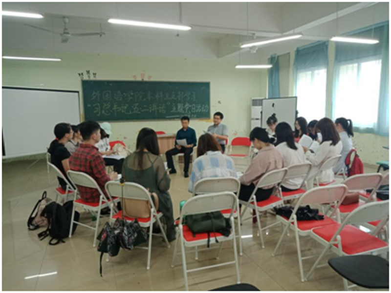 2018年5月8日下午3点30分,外国语学院本科生党支部在云塘校区文科楼A503召开了主题党日活动,本次活动由田帅同志主持,院党支部陈仁凯书记、分团委书记邹磊老师以及15名党员参加。