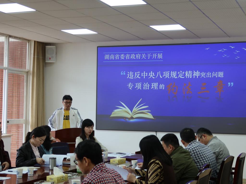 首先,学院认真开展党风廉政建设专题理论学习。纪委委员陈润兰领学十九届中央纪委六次全会精神和赵乐际同志在湘调研讲话精神;纪委委员冯春领学《中共湖南省委常委关于进一步贯彻落实中央八项规定及其实施细则精神的实施意见》和省委省政府“约法三章”。