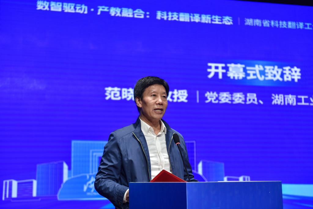 协会会长、中南大学范武邱教授在开幕报告中发表富有洞见的讲话。他指出,当前我们正站在数智时代的新起点,数字化浪潮正深刻重塑翻译学科的边界,智能化技术催生全新的研究范式。范武邱强调,这不仅是对传统翻译模式的全面革新,更是对新时代人才培养体系的深刻叩问。他呼吁全省科技翻译工作者要把握历史机遇,积极推进翻译技术与产业需求的深度融合,构建产学研协同发展的崭新格局。