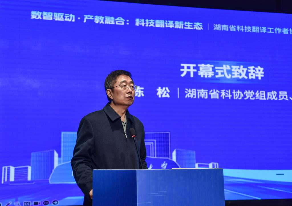 湖南省科学技术协会党组成员、副主席陈松出席开幕式并致辞。他指出,本次年会以"数智驱动·产教融合"为主题,紧扣时代发展脉搏,充分彰显了协会的前瞻视野和责任担当。陈松特别提到,在不久前中国科协主办、省科协承办的"中国南非科技人文交流系列活动"中,协会勇挑重担,组织专业团队,以卓越的语言服务能力圆满完成了各项任务,赢得了各方高度评价,为我省民间科技外交工作贡献了重要力量。