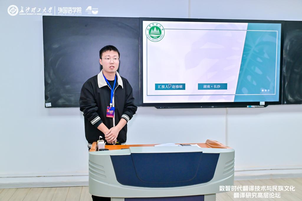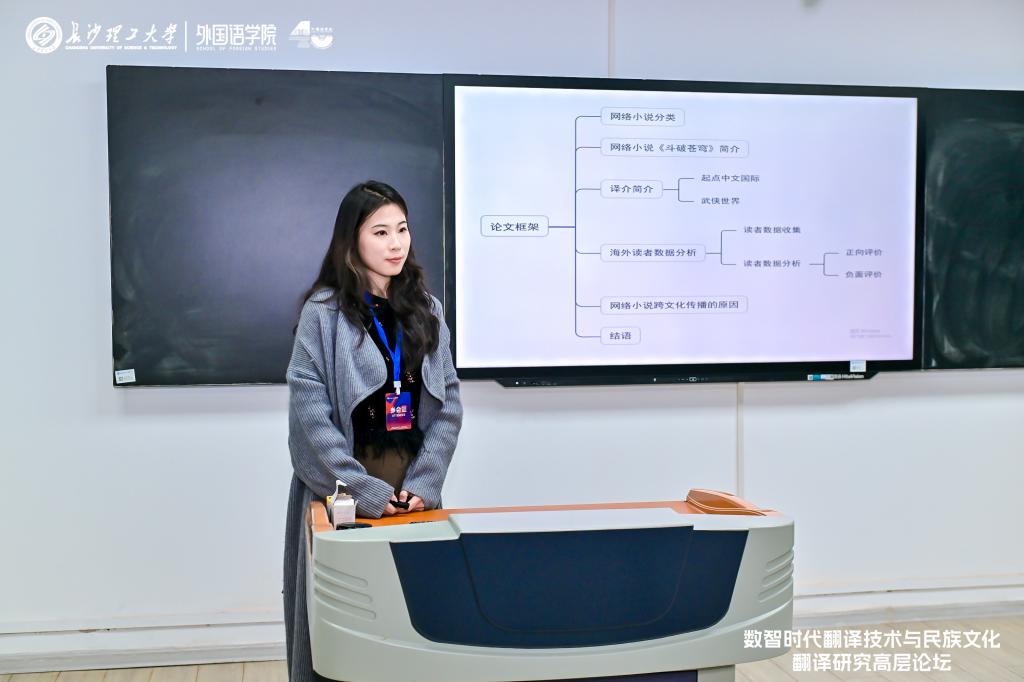 湖南科技大学禹玲教授在分论坛上宣讲了题为湖南大公报特征文学翻译研究学术研究,通过对民国时期湖南《大公报》的翻译文学特征进行分析,探讨了湖南本土报纸中外国文学汉译的特点及其影响。XK星空的刘思利从传播学5W视角出发,研究了湖湘花鼓戏外宣翻译策略与传播途径,为推动中国传统文化走出去提供了新的视角。同样来自XK星空的陈慧则聚焦湘西地区珍贵的非物质文化遗产,以纽马克翻译理论为指引,为非遗的国际传播开辟新路径。此外,北京外国语大学的胡昕以人工智能译文为切入点,对湘赣花炮文化的接受度展开全面分析,为花炮文化的传承与传播提供新视角。