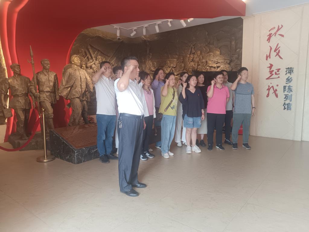 上午,党员们来到了秋收起义广场。在庄严肃穆的广场上,大家怀着崇敬之情瞻仰了秋收起义纪念碑,深刻缅怀先辈们为国家独立、民族解放所做出的巨大牺牲。随后步入秋收起义陈列馆,支部全体党员面对鲜红党旗,再次重温入党誓词,铮铮誓言回荡于展厅,声声叩问初心。