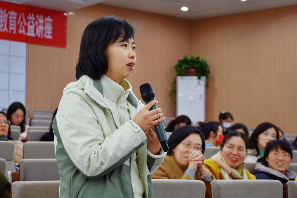 在现场互动环节,聆听讲座的几位老师提出了“如何与高中阶段学习繁忙的孩子更亲密地沟通?”“如何正确引导孩子的情绪?”“在竞争压力较大的大环境下,如何选择校外学科培训?”、“如何引导偏科的孩子?”等问题进行现场探讨,两位老师都一一给予了认真解答。