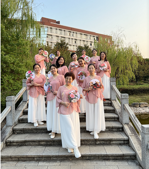 曼舞协会的会员们穿上了粉色飘逸的会服,游走在美丽的云塘校区。