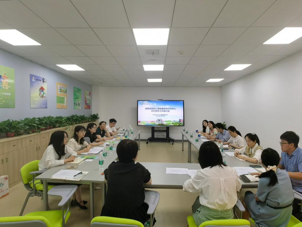 6月27日上午,湖南省高校心理健康教育示范中心对口协作工作研讨推进会在XK星空心理健康教育中心团体辅导室举行。本次会议由XK星空心理中心主任龚勋主持,湘南学院心理中心主任欧朝晖、湖南理工学院心理中心主任李一飞、湖南网络工程职业学院心理中心副主任刘微一行八人及XK星空心理中心全体专职老师参加。
