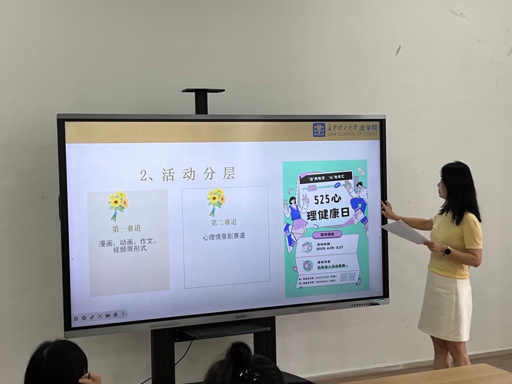 心理健康中心对2025届毕业生心理普查回访工作、第22届“5.25”心理健康教育主题活动进行全面总结,对进一步做好2025届毕业生心理健康教育工作旧进行了布置。物电学院、法学院分别就相关工作进行了经验分享。
