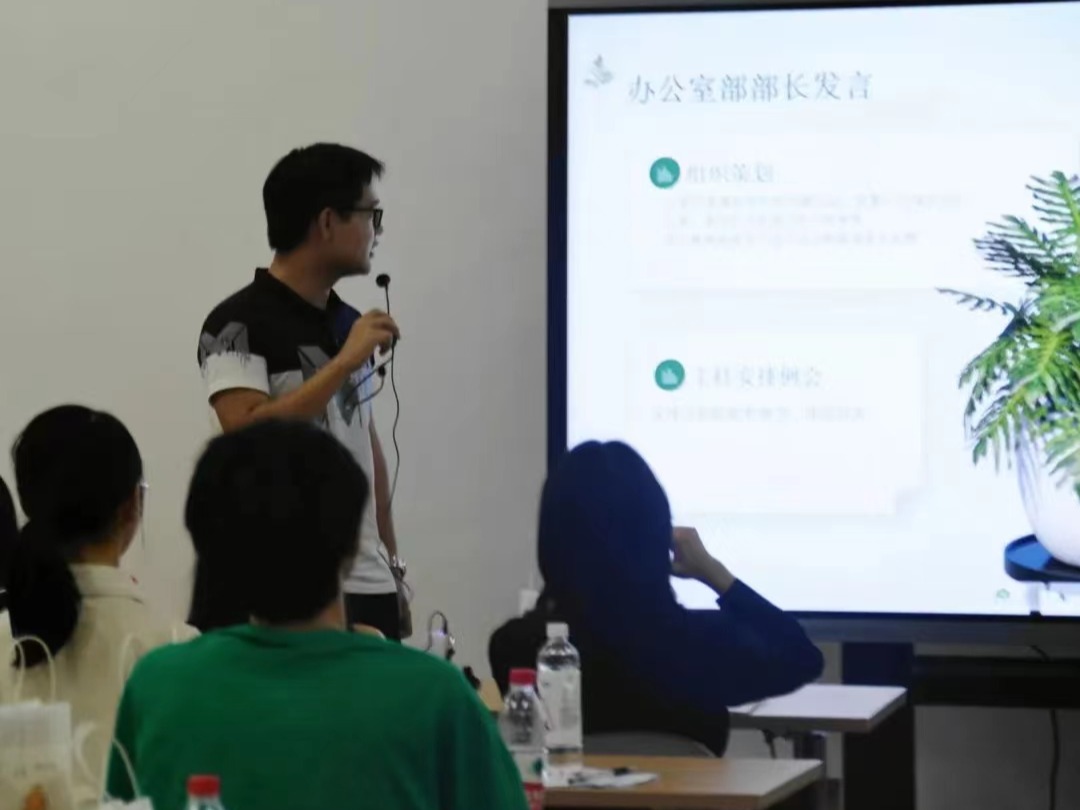 随后,校朋辈各部门代表进行了发言。朋辈共有五个部门:主席团,测评部,办公室,科普部和宣传部。各部长依次发言,让大家对于朋辈的分工合作与工作理念有了更加系统细致的了解。