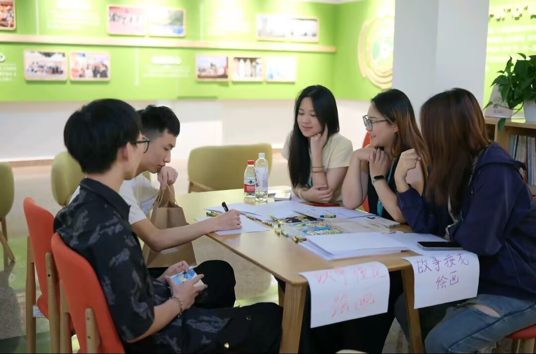 在故事接龙绘画摊位,参与者通过绘画和叙述的方式共同完成一幅画作和一个故事。此活动不仅激发了参与者的创造力和想象力,还通过创作过程帮助同学们放松身心、缓解压力。记忆王者情绪版考验参与者短时间内的反应能力和对各种情绪的识别能力,通过画面来呈现不同情绪的特点,能够帮助同学们提高对各种情绪的敏感度,准确识别自己和他人的情绪。信任盲行摊位设置了两人一组的信任游戏,一人蒙眼用筷子夹取乒乓球,另一人用语言引导其绕过障碍物到达终点,角色互换后再次重复。同学们分享了自己在不同角色中的感受,并探讨了如何更好地建立信任。梦想拼贴银行摊位提供了杂志、报纸、彩纸及贴纸等材料,参与者通过这些材料来搭建自己的梦想世界,制作梦想拼贴画。此活动激发了同学们的动手能力和创意,通过资源共享促进成长与交流。
