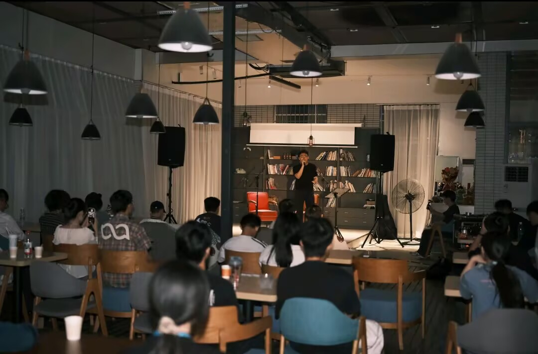 当晚,云影咖啡馆同步举办了“音乐故事会”活动。师生们齐聚一堂,在暖色调灯光营造的文艺氛围中,聆听歌手分享故事并用音乐演绎。现场观众与歌手轻声互动,气氛温馨热烈。咖啡的醇香与悠扬乐声交融,为师生们带来了一场融合故事与旋律的校园文化体验。