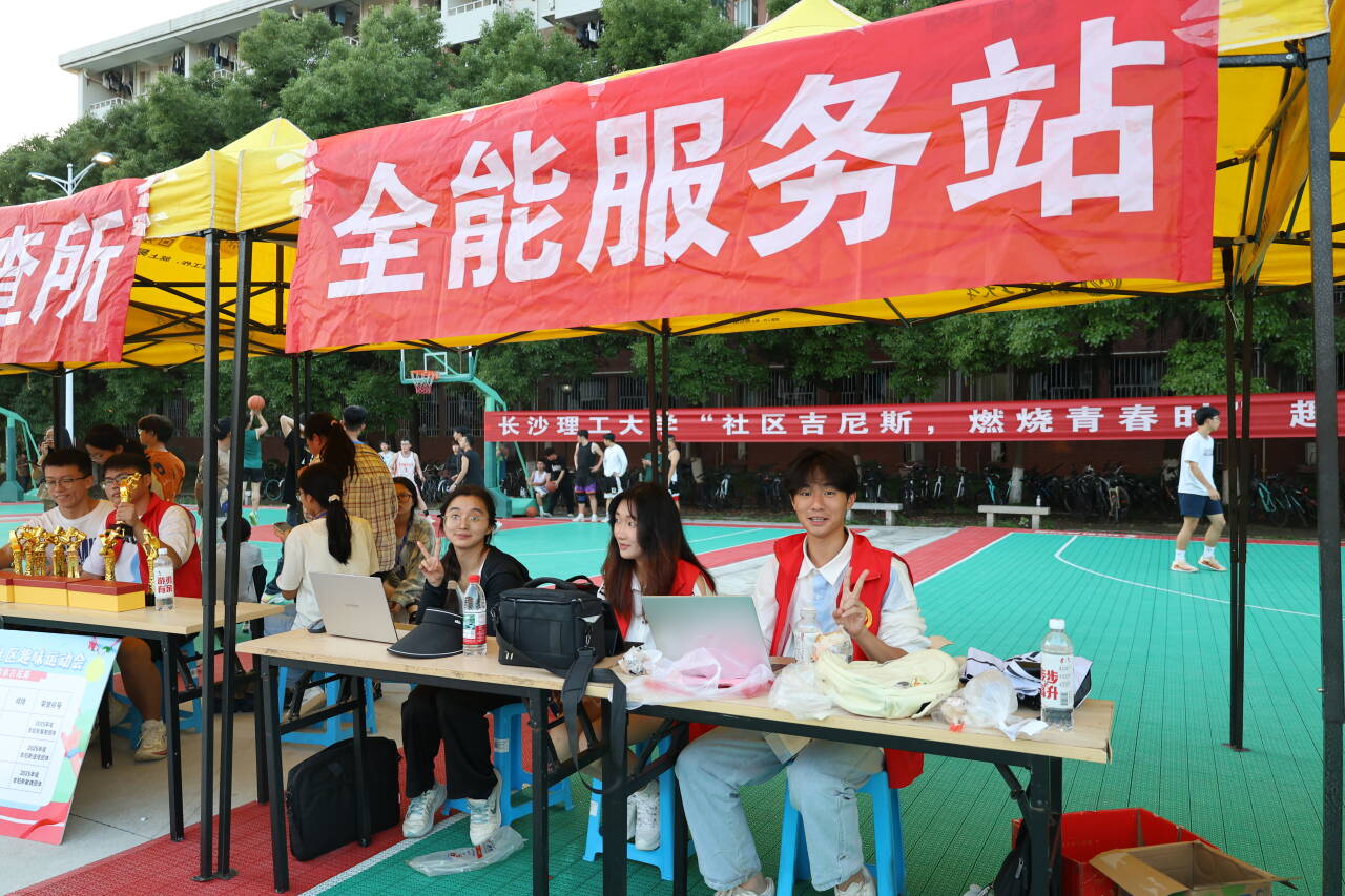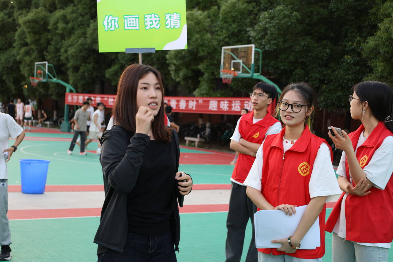 学社联同学的开场舞点燃全场,王学成的加油鼓劲、篮球赛冠军队土木学院的精彩三分球把运动会推向高潮。三分球挑战区秒变“欢乐之区”——每当有人投中,围观群众就会集体欢呼和加油助威;筷夹乒乓球区上演“手抖大师”合集,乒乓球逃跑的速度比早八人冲向教室还快;投壶比赛榜首投中33支,简直就是长理“神投手”;“你画我猜”的默契配合、“疯狂快递员”的障碍冲刺、“四人五足”的团队协作,无不展现着室友们的默契、智慧与活力,让整个至诚轩社区篮球场成为欢乐的海洋,现场笑声不断。