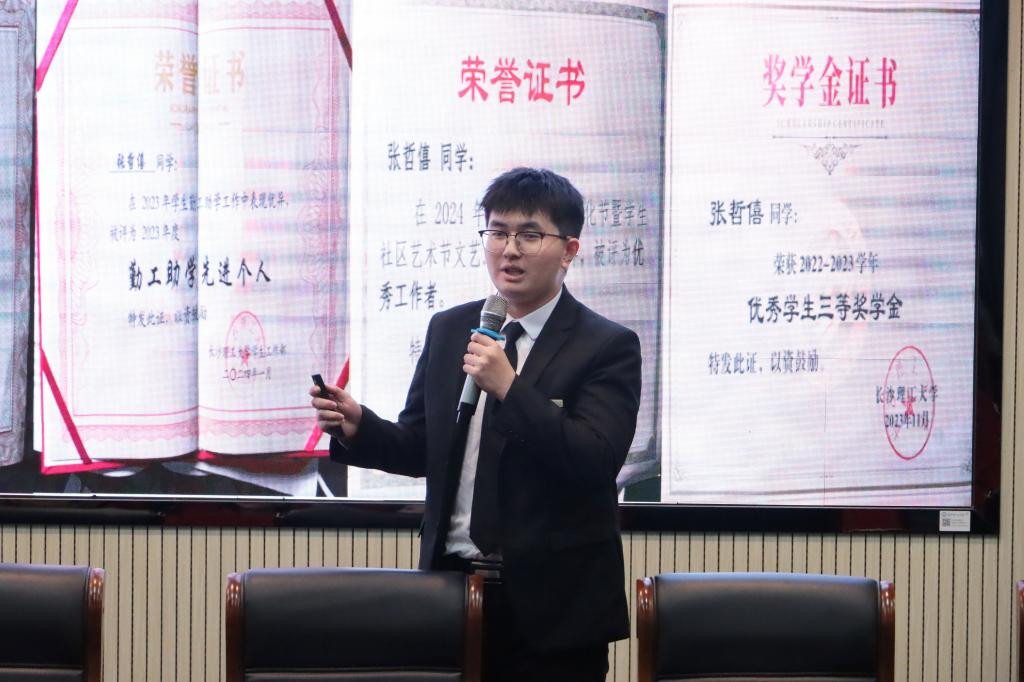 大会伊始,贾超做工作总结报告,系统梳理了过去一年校自管会在制度建设、服务创新、特色活动策划等方面的工作成果,并向每一位成员的辛勤付出表示感谢。