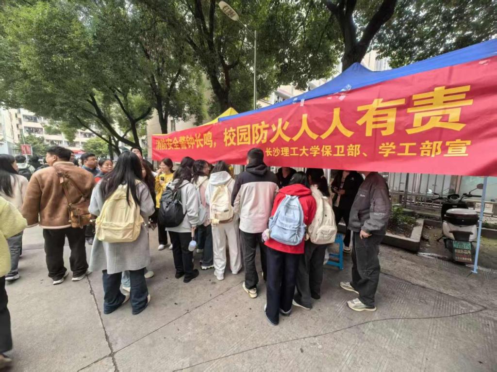 为深入贯彻落实消防安全工作要求,强化学生公寓安全管理,提升学生消防安全意识与应急处置能力,2025年11月11日中午,由学生工作部公寓管理服务中心联合保卫处共同主办的“11・9”全国消防日主题宣传活动,在金盆岭校区西苑食堂周边顺利开展。