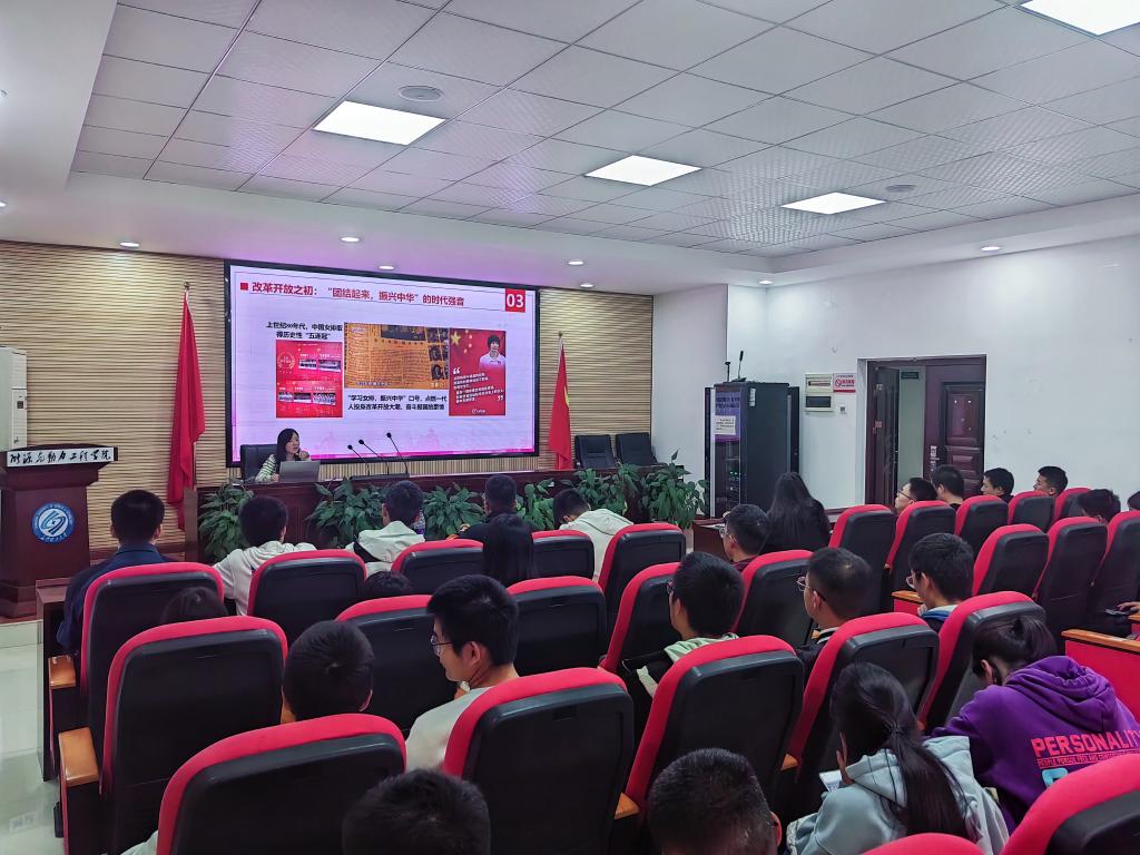 11月21日晚19:00,能动学院在云塘校区新能源大楼2栋502会议室开展“青春逢盛世 奋斗正当时”主题团课。团课由院团委书记陈颖主讲,院学生会各部门部长副部长、23级各班班长、团支书、组织委员参加本次团课。