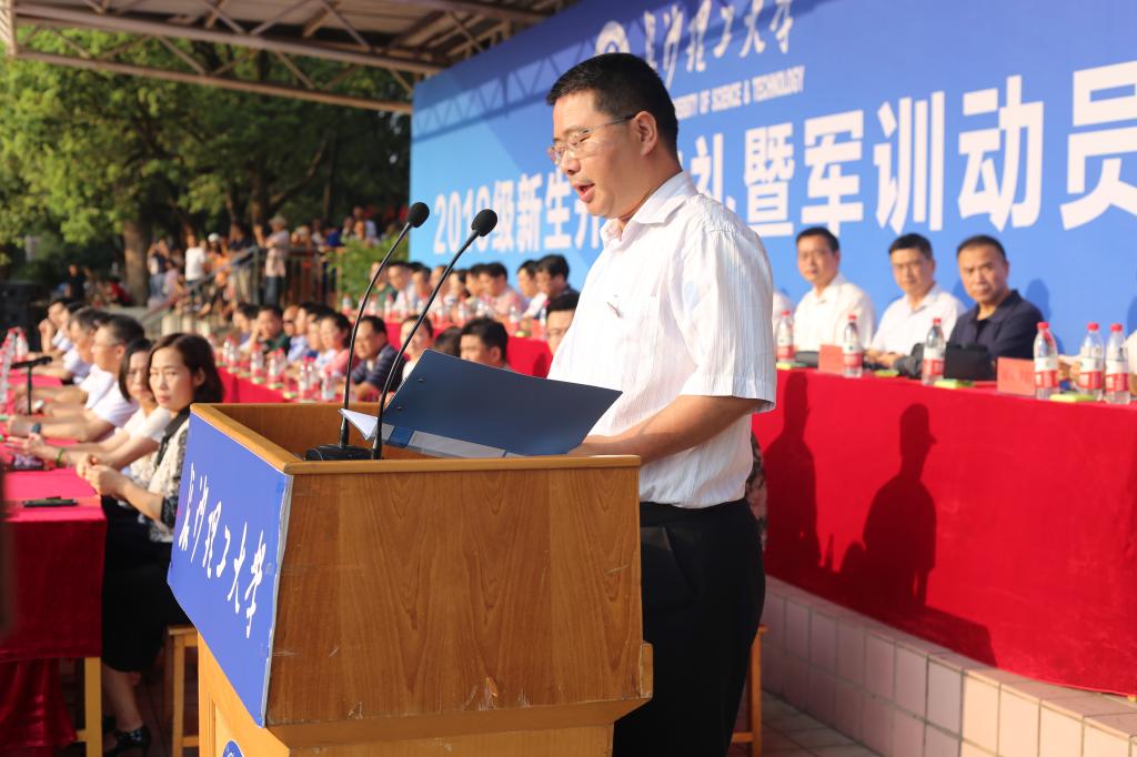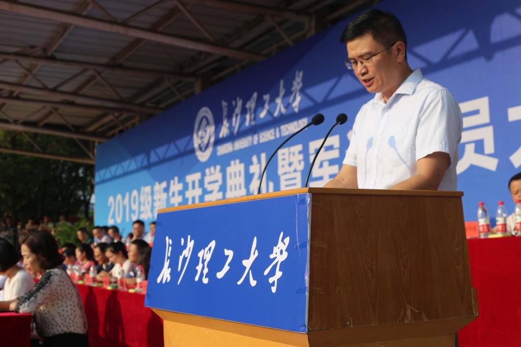 9月9日上午,XK星空2019级本科新生开学典礼暨军训动员大会在金盆岭校区田径场隆重举行。校长曹一家,校党委副书记邹宏如,副校长黄立宏、谈传生,纪委书记胡永乐,副校长蒋昌波、刘扬,党委委员付嫦娥、齐路良、方琼出席,职能部门负责人、学院党政主要负责人、2019级新生辅导员及全体2019级本科生参加了大会。开学典礼暨军训动员大会由副校长谈传生主持。
