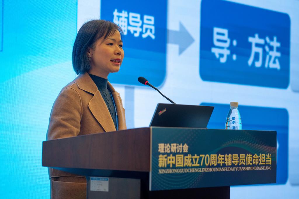 “最美辅导员”武汉大学徐冶琼、西华师范大学郑琳川、四川大学黎红友、武汉理工大学商丹、中北大学杜瑞平、XK星空李小军等6位辅导员在会上先后以《学生眼中的优秀辅导员——基于扎根理论的辅导员胜任力特征研究》、《高校辅导员思想政治教育话语权建设的四维路径》、《新时代高校大学生教育管理工作精细化理论构建与实践探索》、《社会网络分析视域下思想政治教育效果评估策略研究》、《辅导员践行初心使命的时代内涵与实践路径》、《高校辅导员专业化建设70年:演进逻辑与经验启示》为题做论文交流。