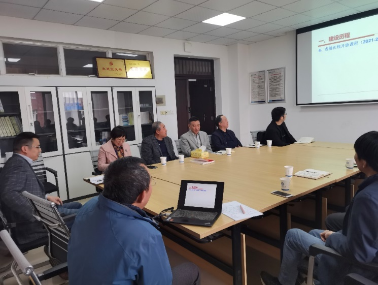 首先,胡海军主任介绍了数学与应用数学系近几年在课程建设方面所取得的成绩,该系先后有三门专业基础课程获批湖南省一流课程。接着,本系教师代表分享课程改革的经验。游兴中教授结合《高等代数》课程建设历程、省一流课程与国家一流课程申报等方面分享了课程改革的经验。游教授强调:虽然《高等代数(一)》与《高等代数(二)》已经获批湖南省一流课程,但与国家级一流课程还存在较大差距,需进一步建设和完善。
