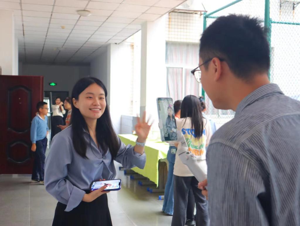“各位新同学,我们现在的地理坐标是在XK星空金盆岭校区的校门口。今天我们将沿校园主干道给大家介绍校园风光。”9月24日上午,法学院辅导员刘阳正手持自拍杆正在给屏幕前还未到校的大一新生直播逛校园,辅导员和志愿者们一路从东南门经电苑楼到四号教学楼(法学院),在法学院内带领新生线上参观了学术报告厅,聆听了正在举行的“人与自然和谐共生中国式现代化的法治保障”学术研讨会暨第三届湘鄂环境资源法学研究会联合年会,继而参观了XK星空法律援助中心、智慧教室、辩论实训室、行政办公区域、模拟法庭、风雨球场等学院场地,并前往南苑操场、食堂、23级男生、女生宿舍等功能区域。