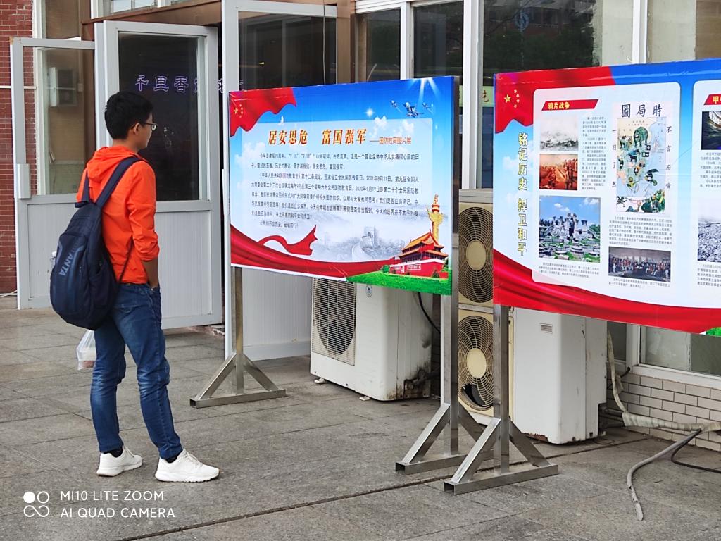 9月19日第二十个全民国防教育日,主题是“奋进新时代、聚力强军梦”。学校人民武装部在云塘校区汀香园食堂前组织了国防知识图片展活动,通过校园LED电子屏播放了国防教育宣传内容,还将结合2020级新生军训工作组织开展国防讲座和国防知识学习考试。通过开展多种多样的活动深入宣传国防法规,普及国防知识,强化国防观念,增强学生的国防意识。