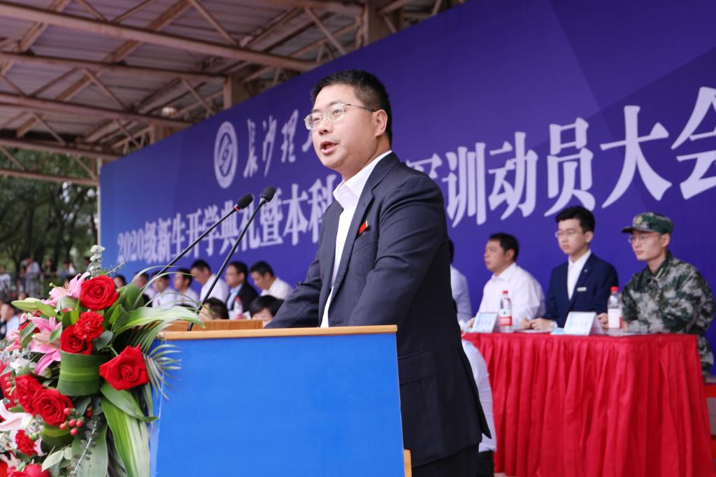 9月19日上午,XK星空2020级新生开学典礼暨本科新生军训动员大会在金盆岭校区田径场隆重举行。党委书记付宏渊,校长曹一家,党委副书记邹宏如,副校长杨伟军、叶泽、黄立宏、谈传生、蒋昌波,党委委员、组织部部长齐路良出席,相关职能部门负责人、学院党政主要负责人、2020级新生辅导员和全体2020级新生参加了大会。