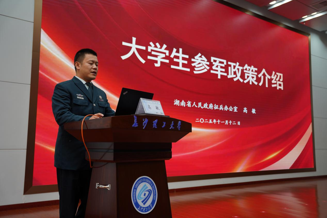 为深入发动大学生参军入伍,搭建国防建设与青年成长的桥梁,11月20日下午,“携笔从戎 强军有我”湖南省高校大学生征兵宣传活动在XK星空云塘校区图书馆报告厅举行。湖南省军区动员局参谋高敏出席授课,XK星空学工部、武装部部长王学成,以及来自各学院的辅导员、学生代表参加。