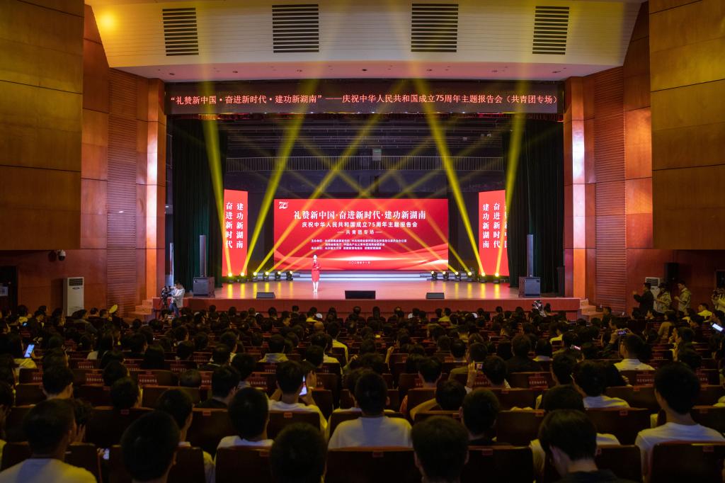 11月6日,由省委宣传部、省委网信办、省教育厅、团省委共同举办,湖南教育电视台和XK星空承办的庆祝中华人民共和国成立75周年主题报告会(共青团专场)在XK星空云塘校区大会堂举行。团省委书记李志超、XK星空党委书记付宏渊、省委宣传部二级巡视员王军湘、主承办单位的负责人、团省委机关全体干部、中小学分管教学的校领导、省直机关和各市州青年代表以及XK星空400余名师生参加报告会。