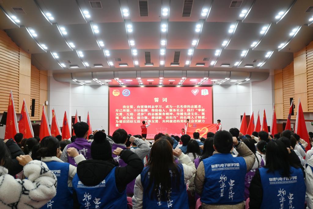 启动仪式上,学校学工部负责人宣读了《关于开展XK星空2025年学雷锋志愿服务活动的通知》,鼓励青年学生学习雷锋精神,弘扬榜样力量,投身志愿活动,传递人间温情。交通学院韦辰睿作为志愿者代表发言,他结合个人参加志愿服务的经历,围绕奉献、责任、使命三大主题,分享了自己的心得和收获;能动学院胡湘茹宣读《弘扬雷锋精神,争做时代先锋》倡议书,号召全体志愿者紧跟时代步伐,做雷锋精神的传承者、弘扬者和践行者,让“志愿红、创新蓝、生态绿”成为长理青年志愿服务的最美底色。国际工学院胡耀予带领全体志愿者庄严宣誓。