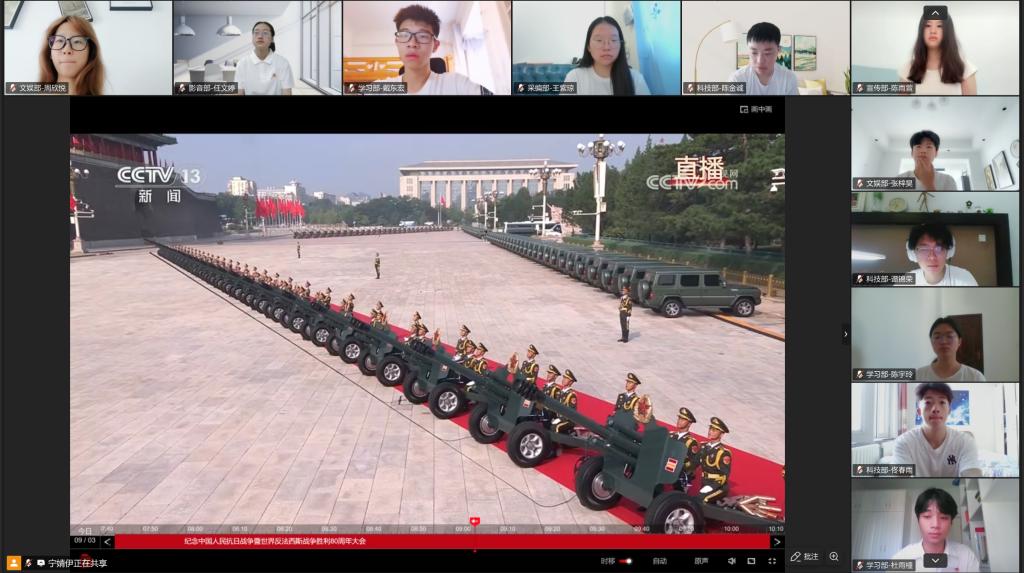 2025年9月3日上午,纪念中国人民抗日战争暨世界反法西斯战争胜利80周年大会在北京天安门广场隆重举行。XK星空团委、学生会组织全体成员线上集中观看了在北京天安门广场举行的盛大阅兵仪式直播。