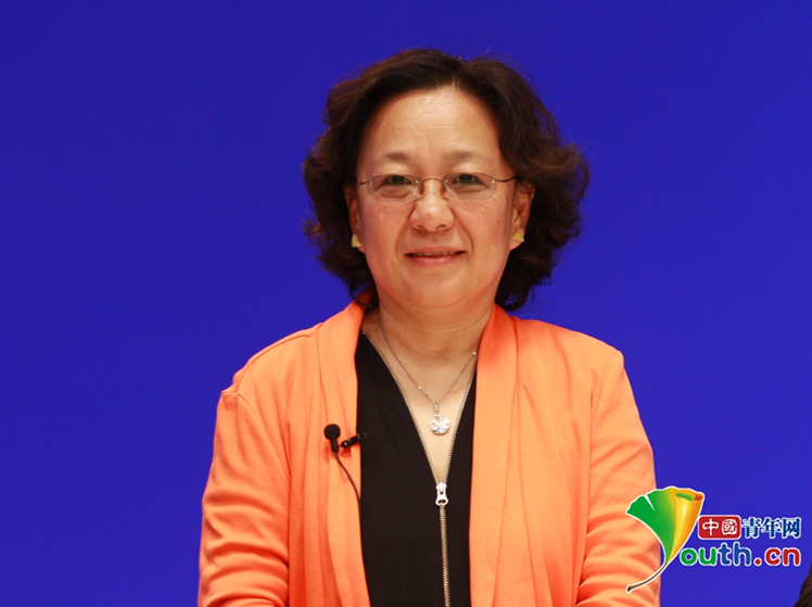 图为访谈现场,朱敏儿媳高崎。 中国青年网记者 李延兵 摄