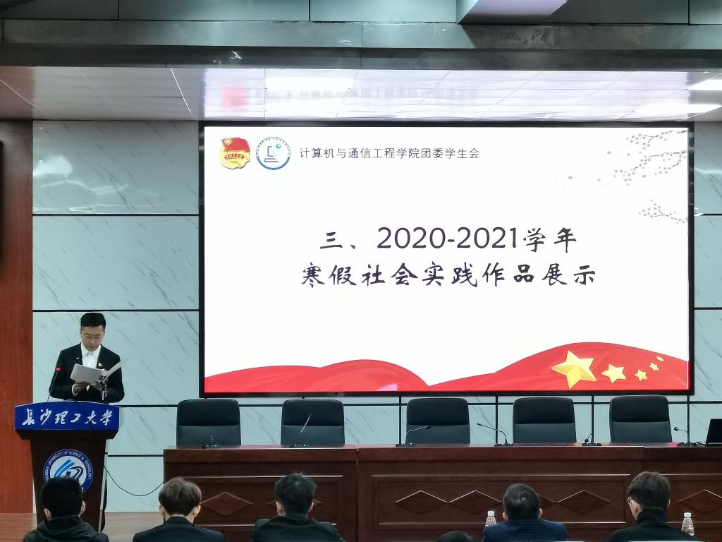 3月30号晚,计通学院在金盆岭四教报告厅召开“学党史、强信念、跟党走”主题教育会暨2020-2021学年青马班寒假社会实践总结会。本次会议由计通学院团委学生副书记王浩翔主持,院党委副书记涂道勇、团委副书记齐铁钧出席本次会议。