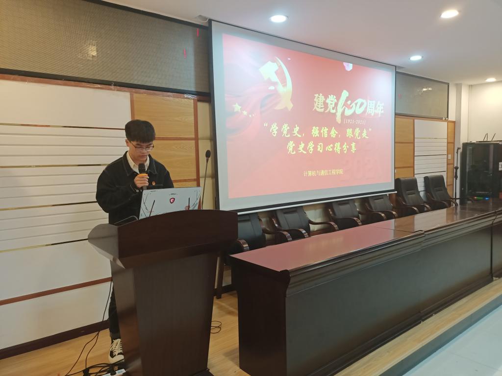 在党史学习心得分享环节,青马班学员代表龙靖和通信1901学生代表耿舒凡发言。龙靖提到,我们要以英雄为榜样,刻苦学习,勇攀高峰,作为一名学生干部,更应该努力学习,以身作则,发挥学生干部的作用。耿舒凡谈到,正因为千千万万个英雄儿女抛头颅洒热血,才有了我们今天的幸福生活,作为新时代的青年,更应该传承精神,为祖国发展贡献自己的力量。
