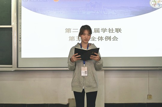 XK星空第二十三届学生社团联合会(以下简称学社联)第五次全体例会于11月30日上午10:00在金盆岭校区十二教500召开,学社联主席团与各部门成员与会。