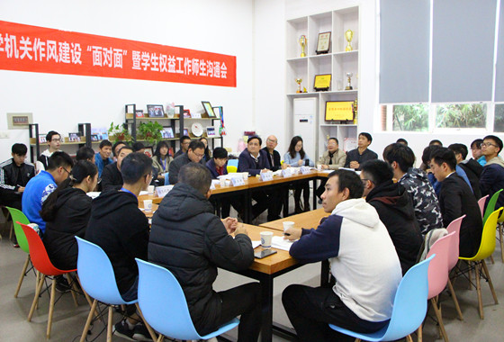 11月20日下午,机关作风建设“面对面”暨学生权益工作师生沟通会于二办公楼B区101会议室召开。会议由机关党委专职副书记、督查室主任刘安生主持,学工部、计财处、后勤处、保卫处、信息化中心、图书馆、后勤集团和校团委的有关老师与38名学生代表参加了本次沟通会。