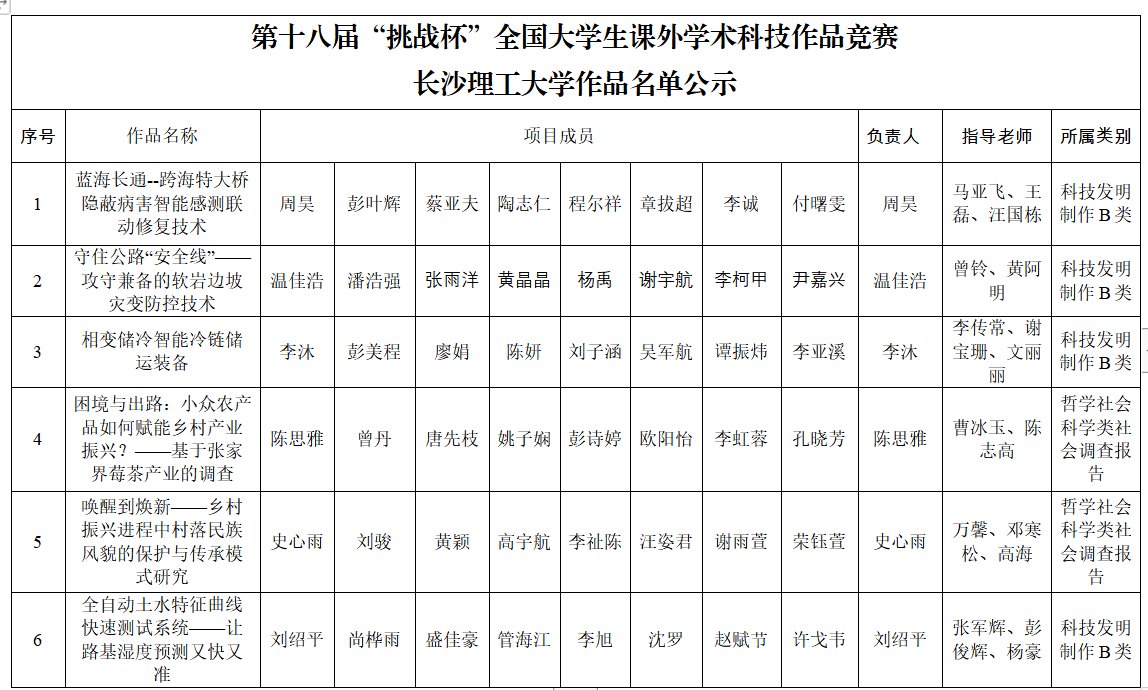 经省赛评审,按照共青团湖南省委《关于推报优秀作品参加第十八届“挑战杯”全国大学生课外学术科技作品竞赛的通知》,XK星空拟有6项作品参加第十八届“挑战杯”全国大学生课外学术科技作品竞赛。