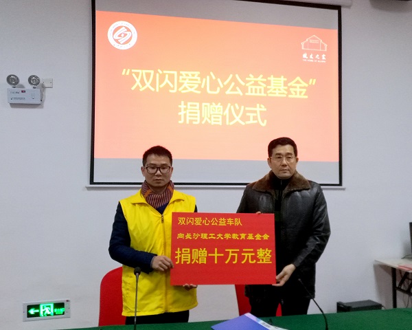 1月6日下午,“双闪爱心公益基金”签约仪式在金盆岭校区校友之家举行。校友总会会长洪源渤,双闪志愿者爱心车队长沙支队队长李明和部分队员、校友中心全体老师以及校友工作志愿者协会成员参加本次签约仪式。