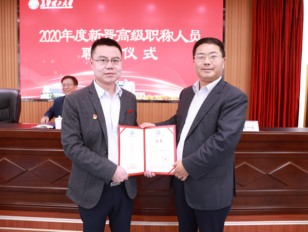 曹一家宣读了2020年度新晋高级职称人员聘任文件,为每一位受聘人员颁发了聘书并依次合影留念。