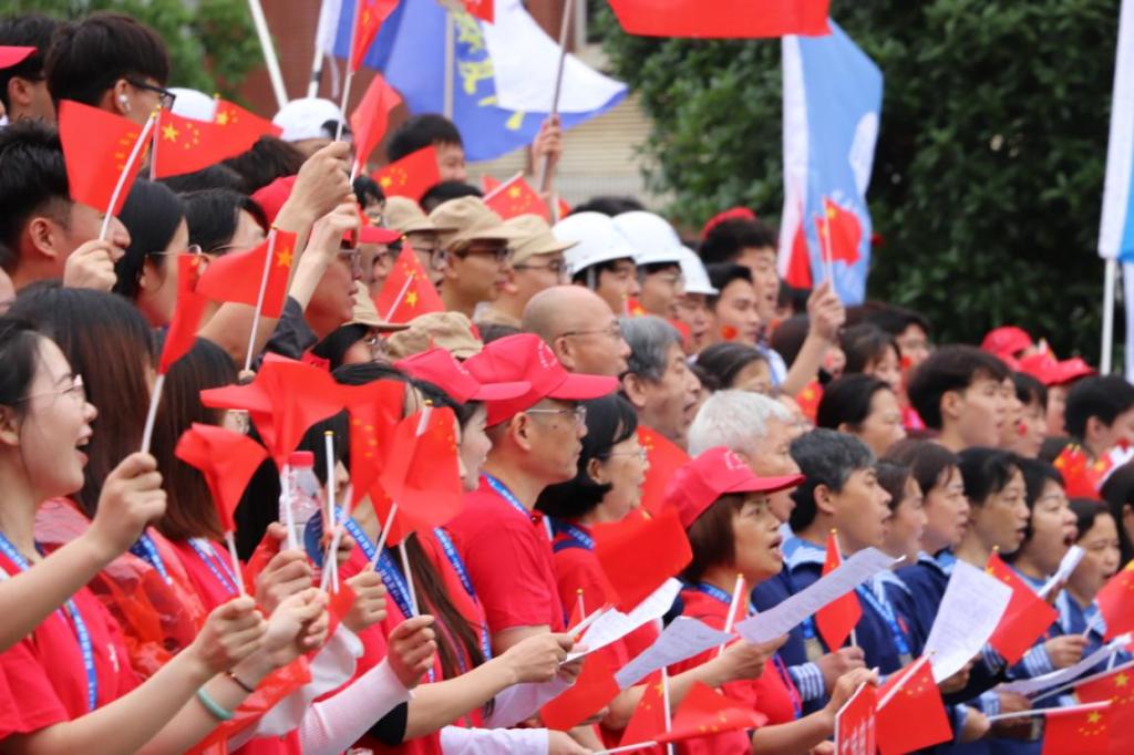 “没有共产党就没有新中国,共产党辛劳为民族,共产党他一心救中国……”5月22日,云塘校区田径上人潮涌动、红旗飘扬,慷慨激昂的歌声响彻校园,笑容洋溢在每个人的脸上。