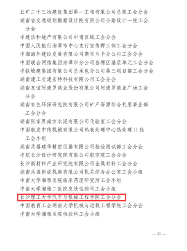 近日,湖南省总工会下发了《湖南省总工会关于命名湖南省模范职工之家湖南省模范职工小家的决定》,XK星空汽车与机械工程学院分工会荣获“湖南省模范职工小家”称号。