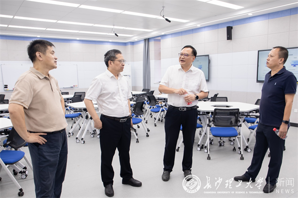 当天下午,付宏渊等校领导在相关职能部门和学院负责人的陪同下,深入金盆岭校区对各个教学楼教学运行、智慧教室建设及相关学院实验室、教师工作室运行情况、后勤保障等有关情况全面检查,并对城南学院开学报到工作、毕业生就业情况、学生思想政治工作等进行深入了解,就下一阶段学院做好师生思想政治工作、提高教学质量等方面提出明确要求。