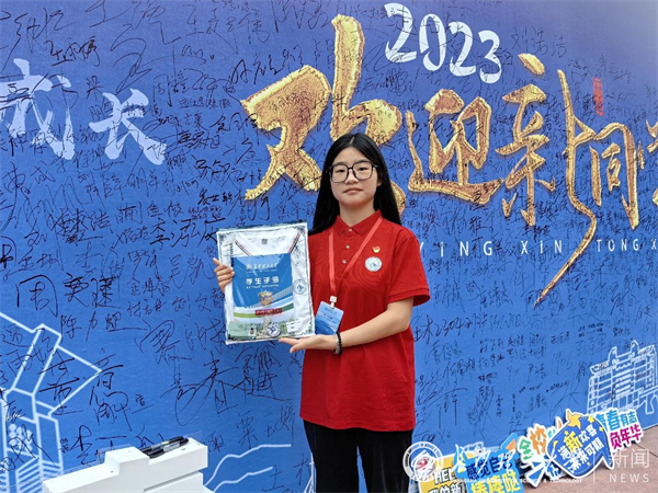 校门口,食堂前,宿舍楼,报到处……五花八门的横幅标语、别具匠心的互动展板、富有特色的定制打卡墙,拉满了迎新氛围感。道路旁高达165cm的“巨型垃圾桶”成了该校新晋网红打卡点,不少新生慕名前来合影。