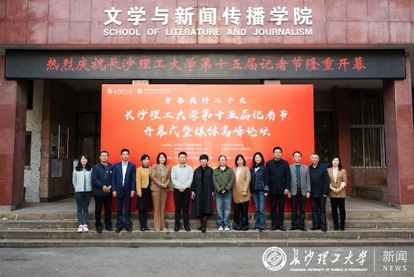 11月14日下午,学校在文学与新闻传播学院新闻演播厅举办第十五届记者节开幕式暨媒体高峰论坛。副校长蒋璟萍,学校党委委员、宣传部部长方琼,特邀嘉宾中国教育报刊社湖南记者站副站长阳锡叶,科技日报社湖南记者站站长俞慧友,湖南日报主任记者余蓉,校党委宣传部、教务处、学生工作部等职能部门领导,文新学院全体院领导、各校级媒体的校园记者和文新学院师生代表参加活动。