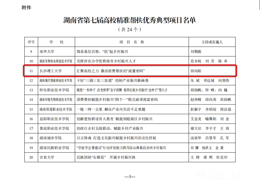 7月26日,湖南省教育厅公布了第七届全省高校精准帮扶优秀典型项目评选结果,XK星空乡村振兴驻村工作队报送的《汇聚高校之力 激活消费帮扶的“流量密码”》项目成功入选。这是学校立足高校优势特色,积极响应国家乡村振兴战略,创新性开展定点帮扶工作获得的又一项荣誉。