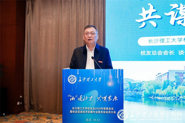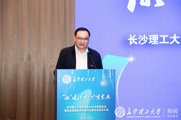 付宏渊向广大校友介绍了学校近一年来的建设发展情况。他指出,大学最伟大的作用是创新引领,大学最伟大的事业是为党育人、为国育才,大学最伟大的荣耀是校友。付宏渊表示,希望校友们传承长理精神,勇担强国使命,心系母校发展,为学科建设、人才培养、产学研合作等多提意见和建议,共同推进学校工作再上新台阶,更加主动融入国家发展大局,共同履行好校友促进经济发展专业委员会职能,当好“校友回湘”的宣传员、联络员、服务员,广泛发动校友关注湖南、支持湖南,为实现“三高四新”美好蓝图彰显“长理担当”。各地校友会要以更务实管用的举措提升整体效能,优化校友组织布局,创新校友活动平台,建强校友联络体系,推动构建母校与校友发展共同体。