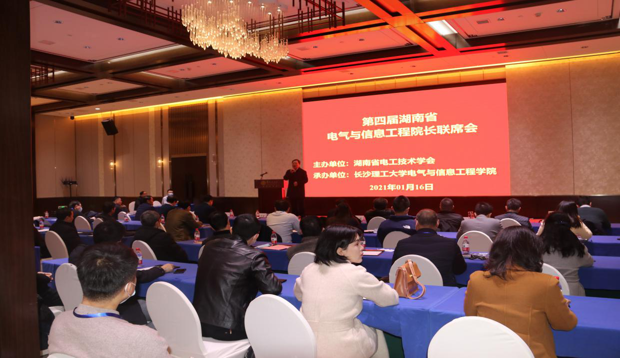 1月16日,第四届湖南省电气与信息工程院长联席会在湖南长沙召开,本次会议由XK星空电气与信息工程学院承办。湖南省教育厅高教处副处长王荣、湖南省电工技术学会理事长黄守道,全省电气与信息工程领域的50余位高校院长、企业代表等参加会议。