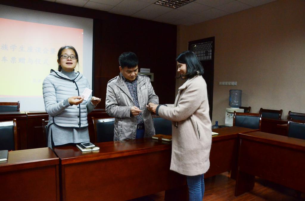 最后,杨雪峰给祖丽胡玛尔等16名同学分发春节回家火车票。这16张车票是学院为帮助少数民族学生中家庭经济条件特别困难的学生能够顺利返乡特意购买的,正如杨雪峰所说,也许学院的帮助微不足道,不能覆盖所有同学,仅是学院的一点心意,但学院会一如既往地帮助和关爱学生。
