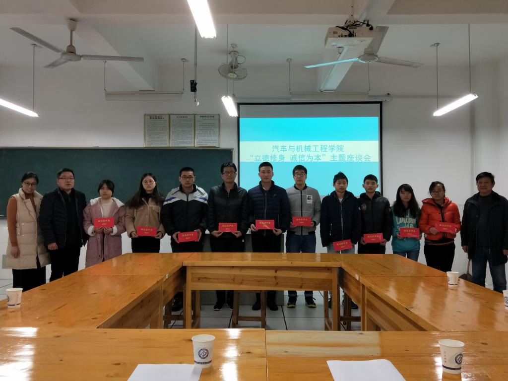 1月9日下午,由汽机学院组织的“立德修身,诚信为本”主题座谈会在工一B412举行,党特邀组织员谈正芳,院党委副书记靳攀科、资助辅导员周路路及部分家困生代表参加了此次座谈会。