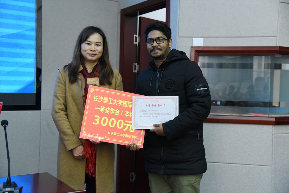 来自孟加拉国的一等奖学金获得者赛力姆同学,代表所有获得奖学金的国际学生发言。他感谢有来到中国学习的机会,在老师和同学们的帮助下,收获了累累果实。发言结束后,23名获奖学生依次上台领奖,接受全体老师同学的祝贺。