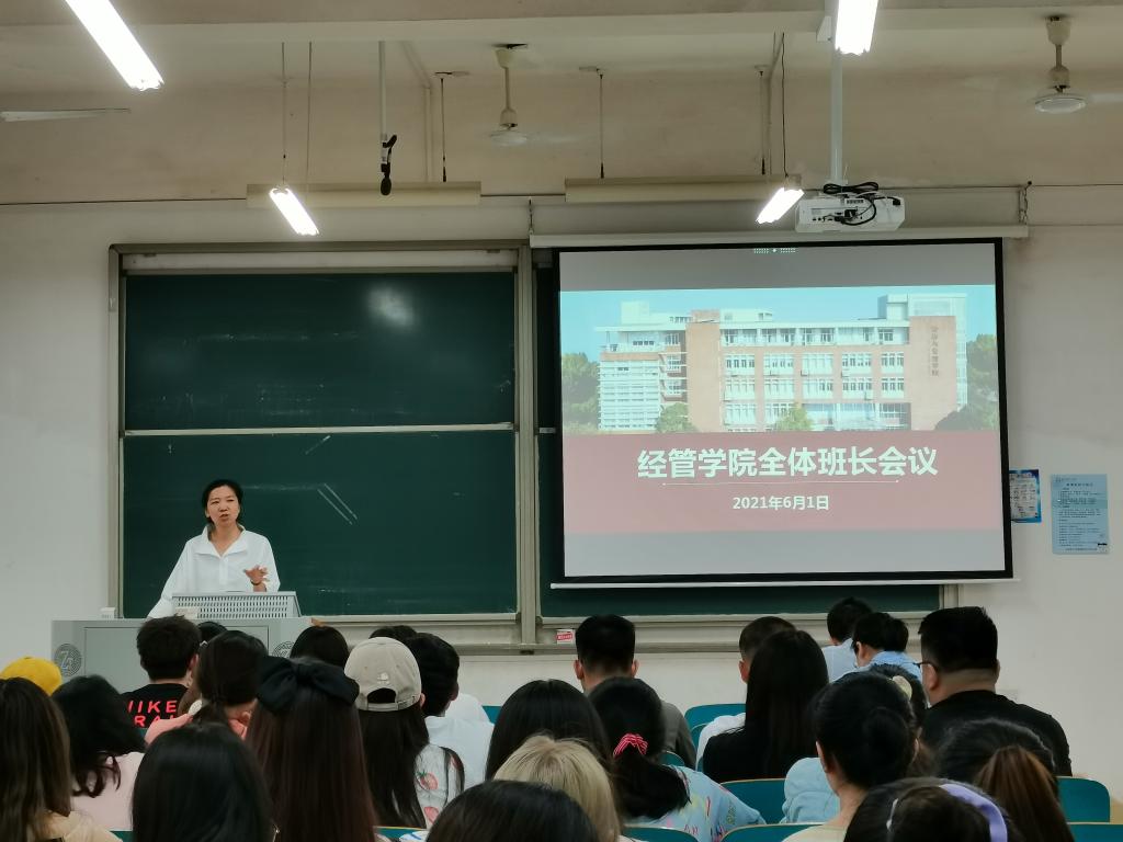 6月1日下午,经管学院召开全体班长会议。学院党委副书记唐青,2017级辅导员肖翠,就业辅导员王宝宝,2018级辅导员何涛、叶鑫,2019级辅导员何艳芝、段懿珊及各年级全体班长参会,会议由何涛主持。